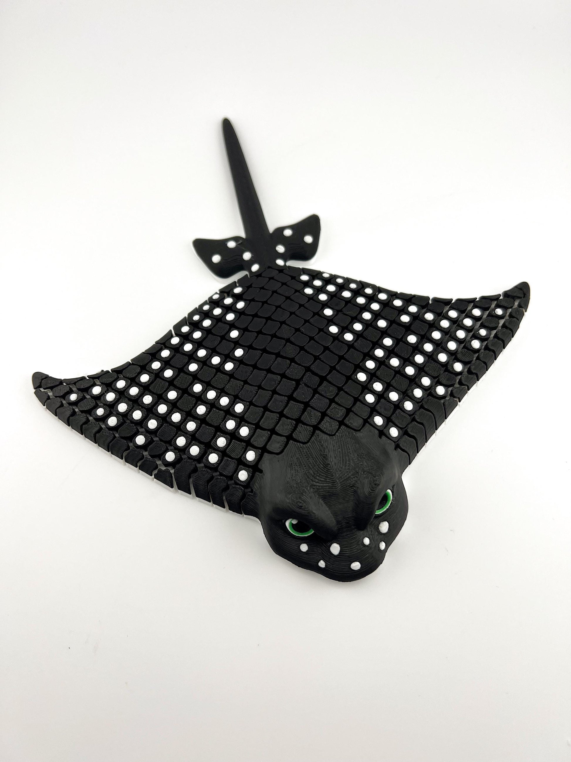 This adorable and articulated 3D printed stingray is the perfect addition to any marine animal lover's collection. Its flexible body allows for endless playful poses.